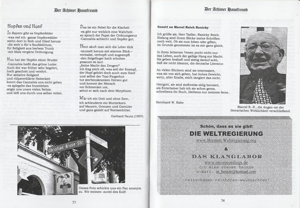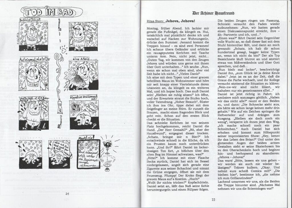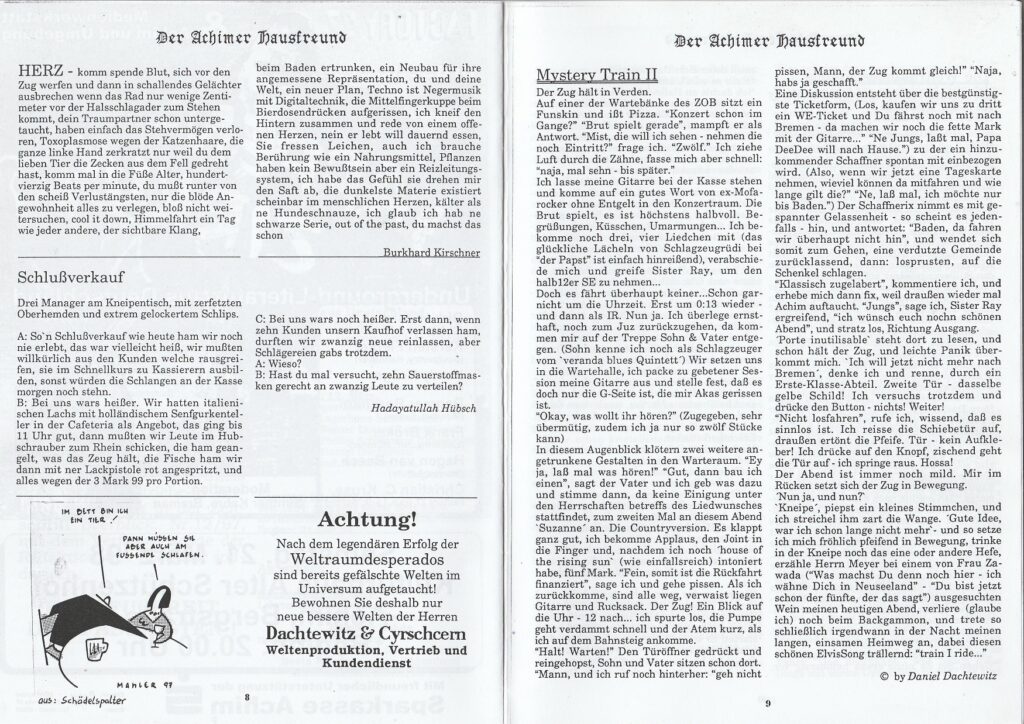 Nach bereits einem Jahr gab es das „Best of 10 Jahre“ zu lesen,. Mit der Ausgabe 35 war dann Schluß. (Angefangen wurde übrigens mit der No.3, die Ausgaben 1 und 2 konnten erst nach längerer Zeit noch einmal kopiert werden, angeblich, weil die Layouterin Rita Nagellack auf die Diskette hat laufen lassen. Möglich war dies, so wurde behauptet, weil ein treuer Leser die beiden Ausgaben als Kopiervorlage zur Verfügung gestellt hatte) Im Frühjahr 2001 schickte das Autorenkollektiv noch ein „Best of 20 Jahre“ hinterher.